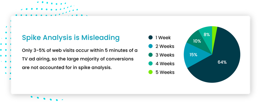 Unlike spike analysis and other methods, conversions are tied directly to TV ad exposures through cutting-edge ACR technology, combined with multiple data sets and rigorous methodology. Start tracking conversions as soon your ads launch vs waiting weeks or months to get results.